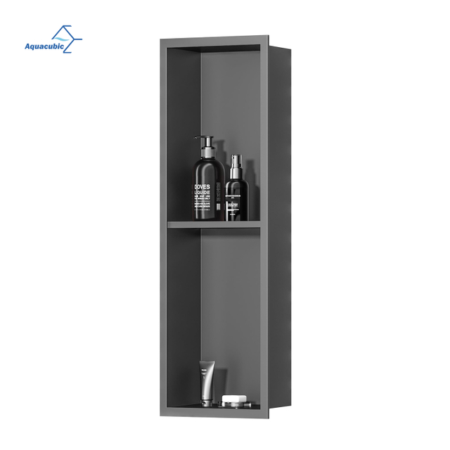 Étagère murale moderne en métal gris à 2 cellules, fabricant professionnel, avec niche intégrée en acier inoxydable