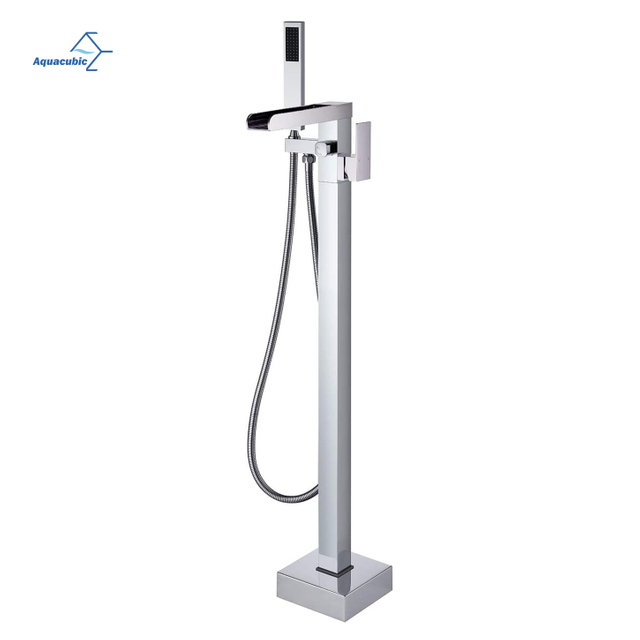 Aquacubic – robinet de baignoire autoportant, remplissage de baignoire, cascade, robinets de salle de bains en laiton à montage au sol avec douchette à main